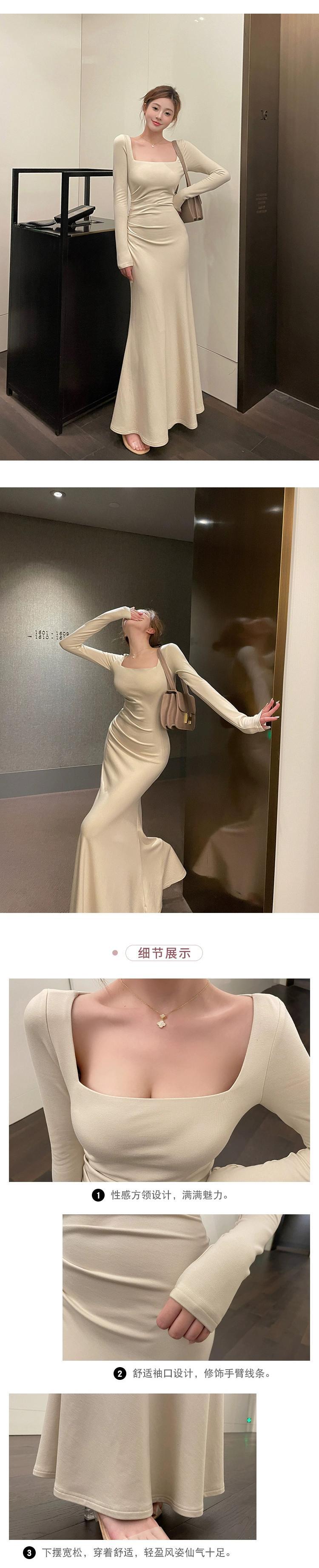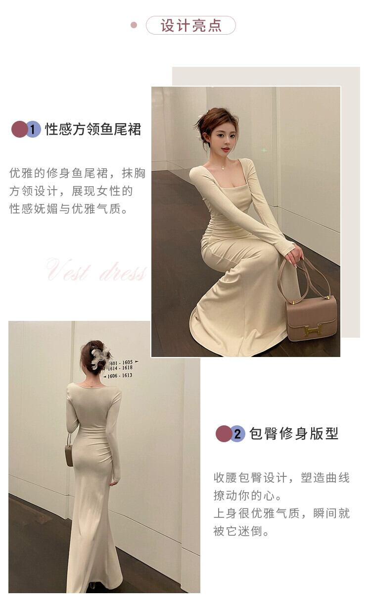 フレンチロングスカートレディースニッチデザインウエスト痩身エレガントハイエンド絶妙な長袖フィッシュテールドレスレディース yingd53277075271