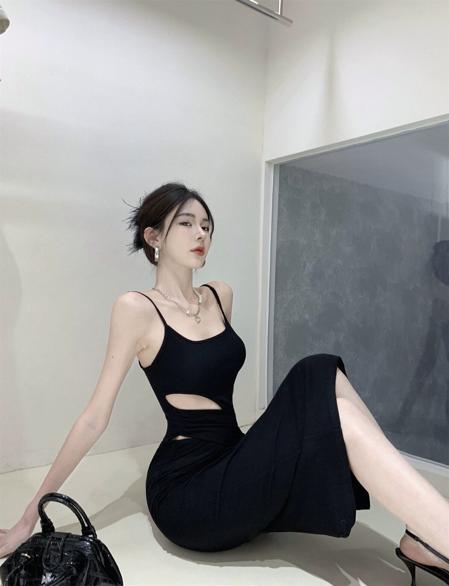 フレンチシックで甘くてセクシーな控えめなデザインのサスペンダードレス、ウエスト露出、中空、高防寒、シスタースタイルドレス 大人ガーリー スウィート キュート カジュアル yingd13738243820