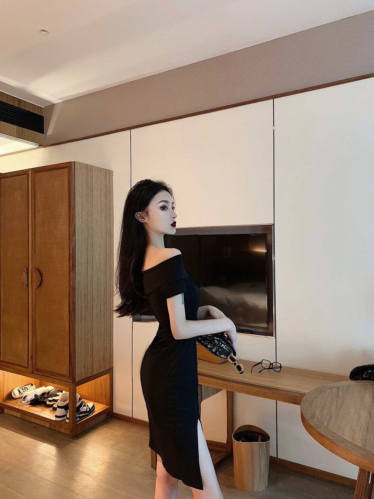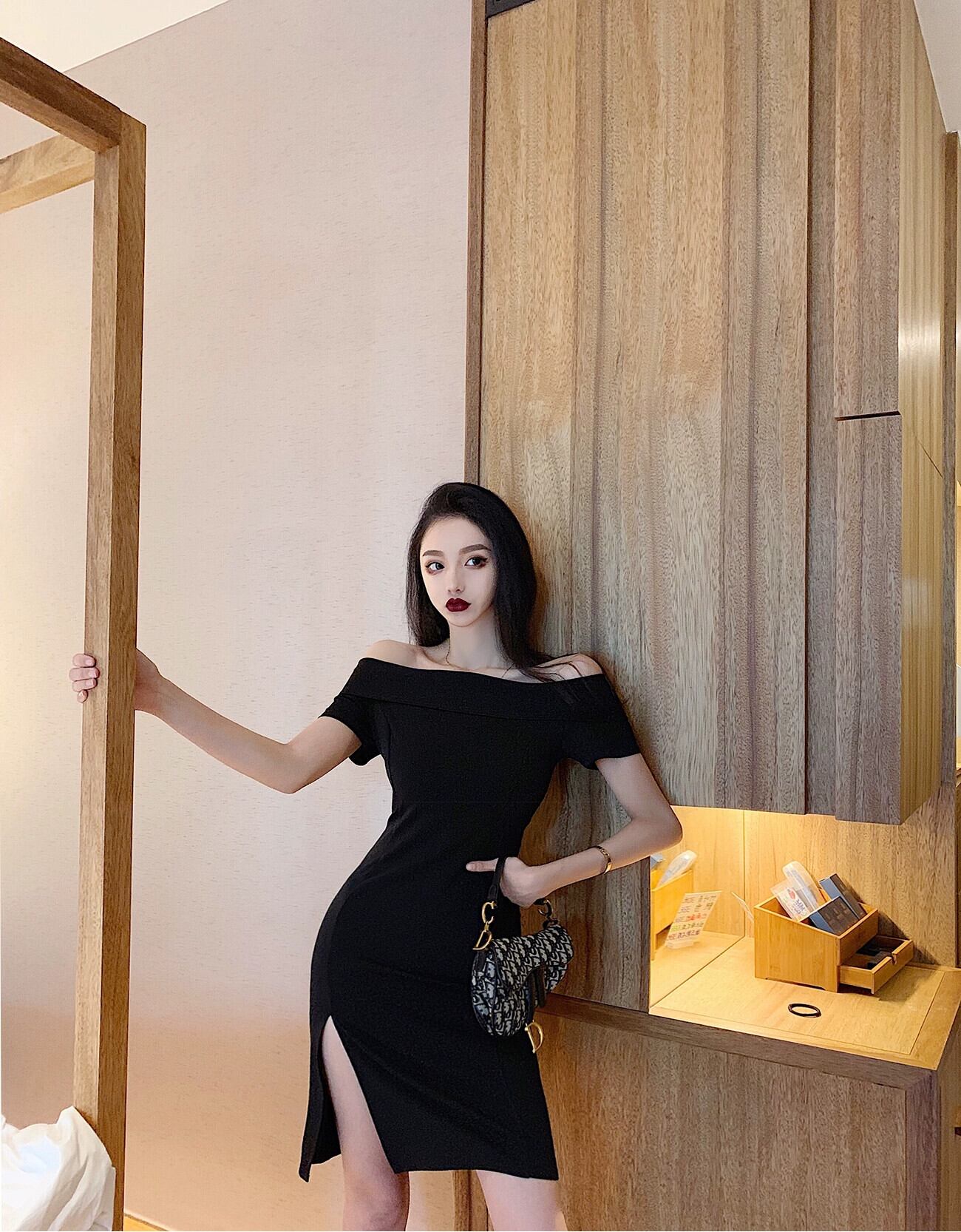 姉妹風リトルブラックドレススリムウエストとセクシーなセクシーなヒップハグスリットワンショルダードレス 2023 新しいスタイルの女性の夏 サマー 夏物 yingd76119104677