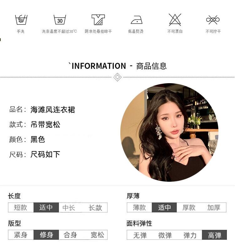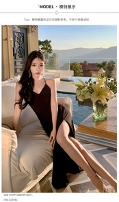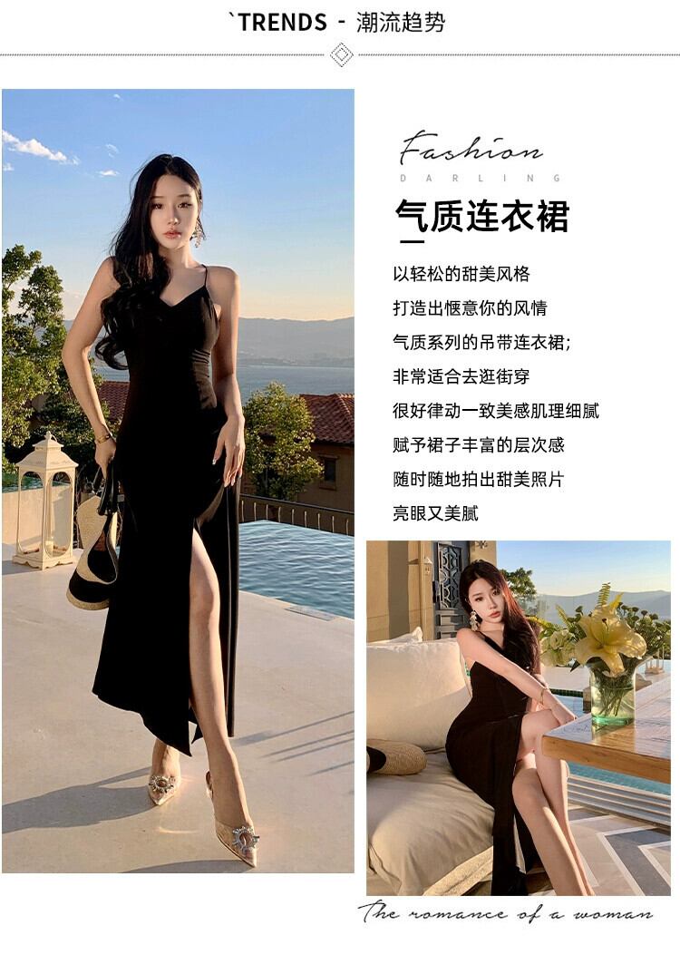 フレンチレトロセクシーな背中の開いたサスペンダーロングドレス気質女性のエンド V ネック黒サスペンダードレス女性の夏 ブラック サマー 夏物 Vネック yingd14688410171