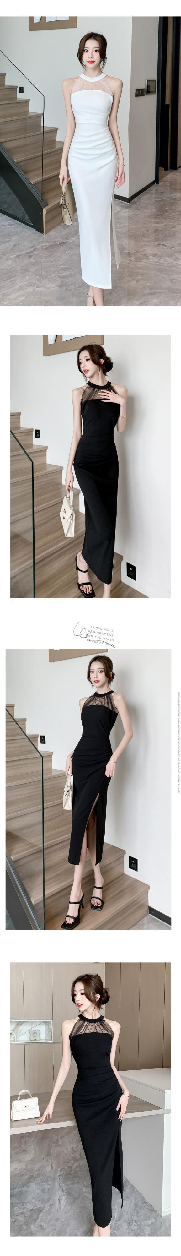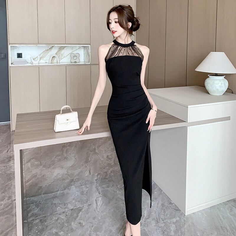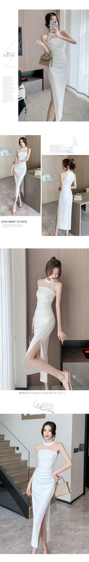 -end 婦人服 ライトラグジュアリー セレブスカート 上質な質感 着痩せ ノースリーブ ホルターネック ワンピース レディース 夏 サマー 夏物 yingd9512715648