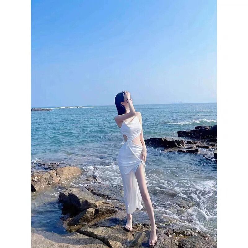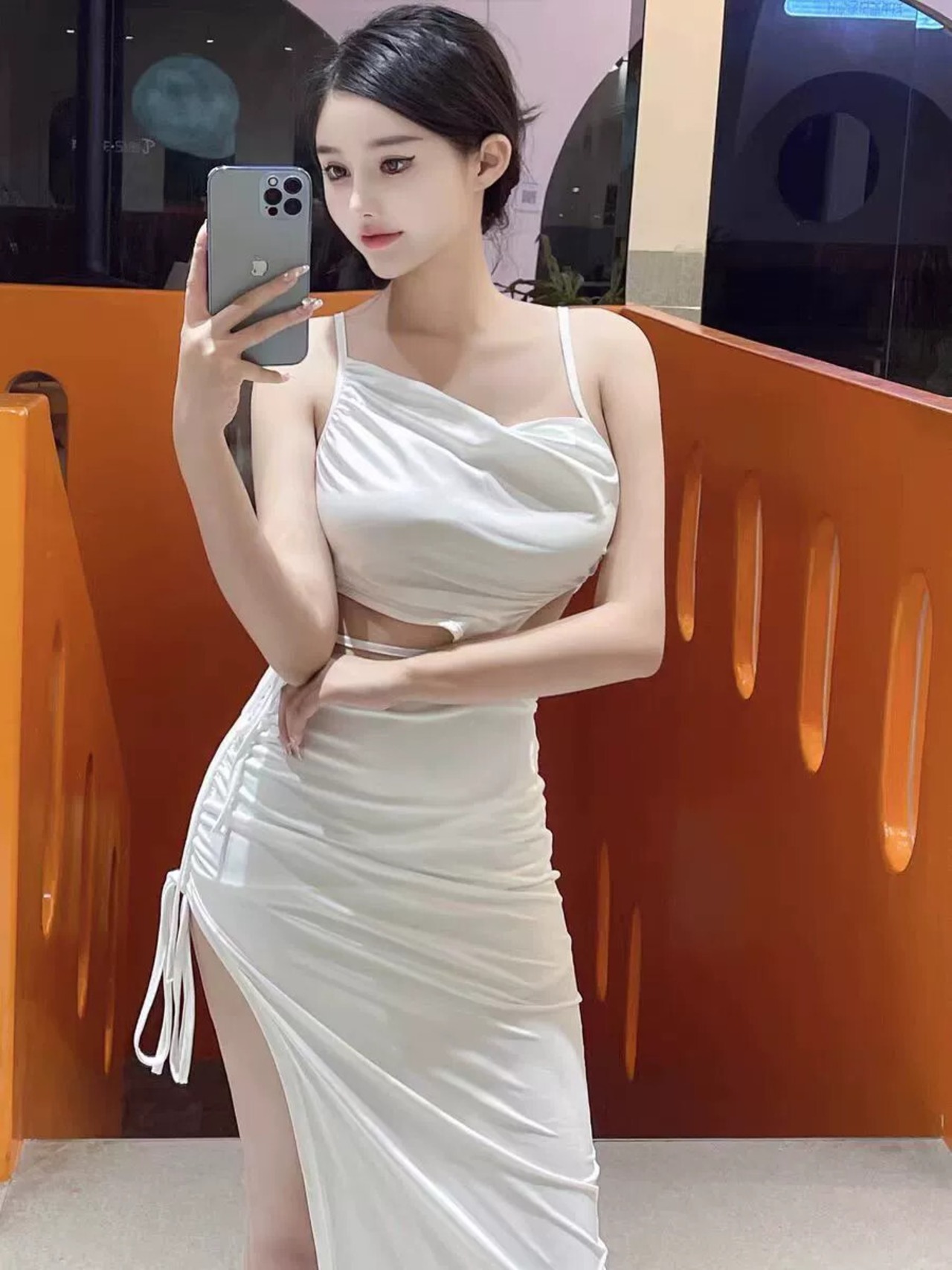 -コールドロイヤルシスタースタイルのセクシーなネクタイウエストが露出した白いサスペンダースカート女性のニッチデザインウエストが露出した白いドレス ホワイト yingd17597559209