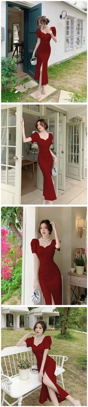 気質の女性のハイエンドヒップ抱きロングスカートウエストとセクシーなスリットロイヤルシスタースタイルのハイエンドの絶妙なドレスの女性の夏の サマー 夏物 yingd31189462659