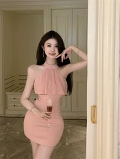 -エンドウェア小人、ホルターネックスカート、女性の夏の純粋な欲望スリムフィットヒップハグ年齢を減らすドレス2023新しいスタイル サマー 夏物 ピュア yingd41031447441