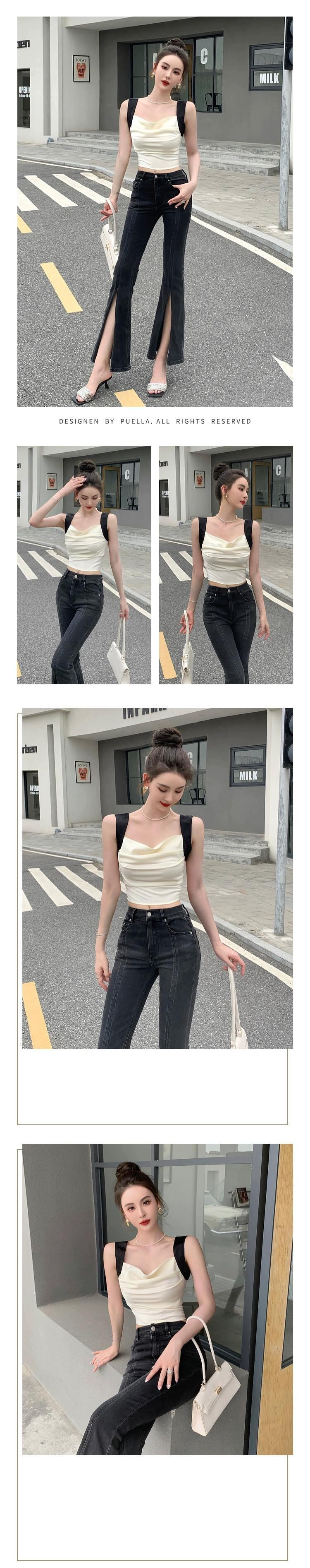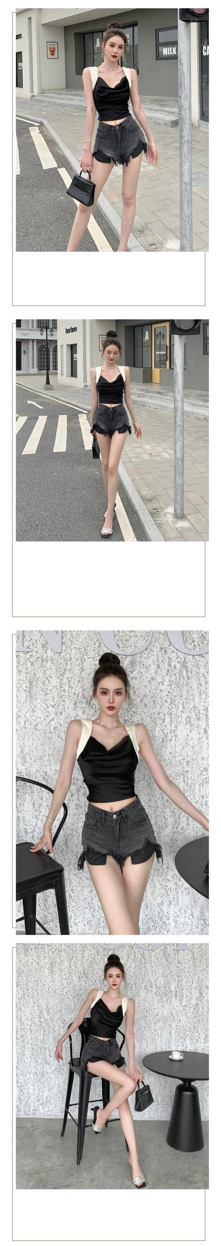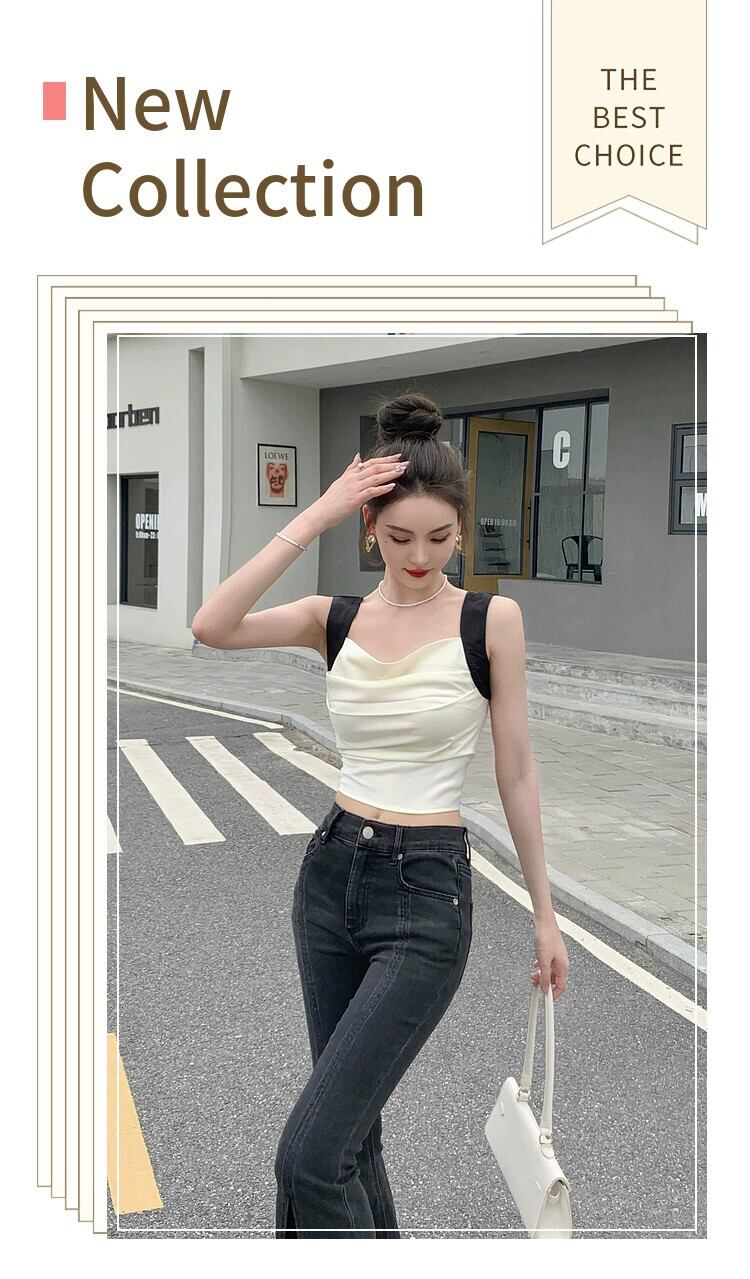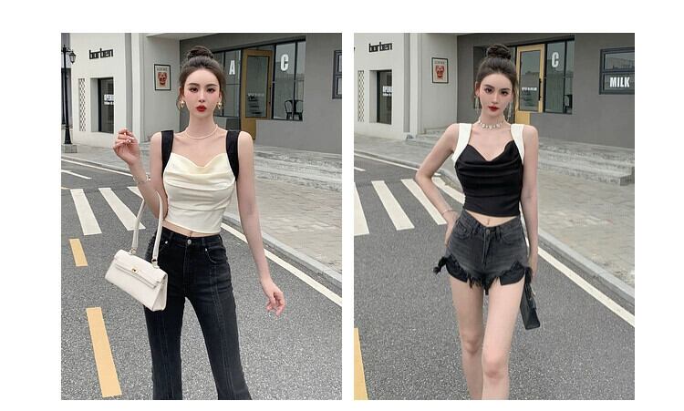 2023 新しい夏スタイルフレンチスタイルスイングカラーコントラストカラーホルタートップ女性ショートスリムフィットトップ サマー 夏物 yingd4043609627