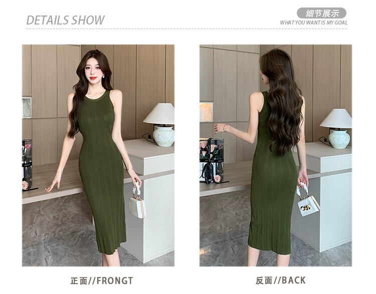 2023 夏ロングスレッドベストドレスレディーススリムフィット - ニットドレス サマー 夏物 yingd61777164317