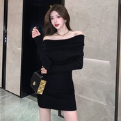 秋の服の女性 2023 新しいクールなスタイルのユニークでシックなスカート長袖ワンショルダーニットヒップドレス女性 ロング オータム 秋物 yingd56701346873