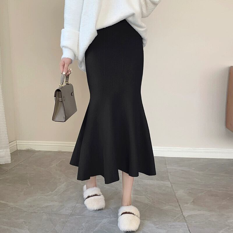 今年の人気の売れ筋スカート、ハイウエスト痩身ニットお尻カバーフィッシュテールニットスカート、レディース2023年秋冬新作 オータム 秋物 ウィンター 冬物 yingd44848494023