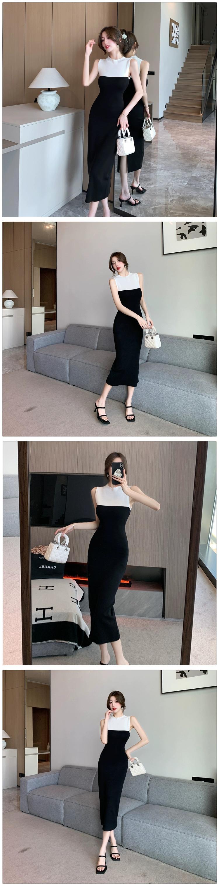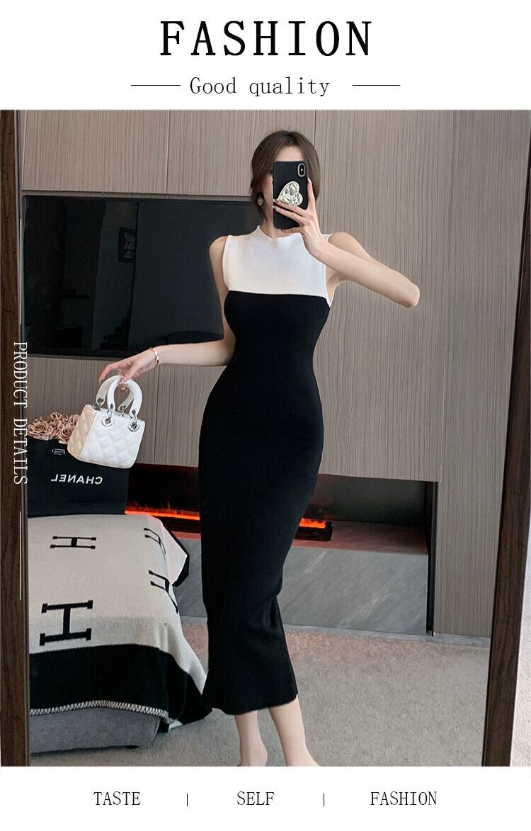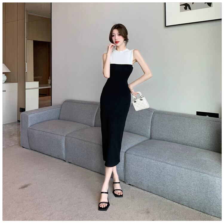 フランスのハイエンドスリムフィットヒップハグ気質ロングスカートウエスト痩身とセクシーなスリットノースリーブニットドレス女性の夏 サマー 夏物 yingd88576744193