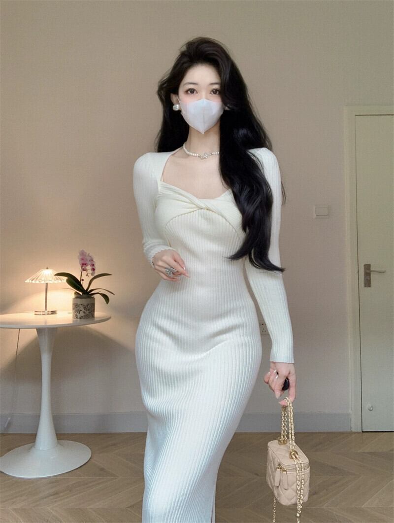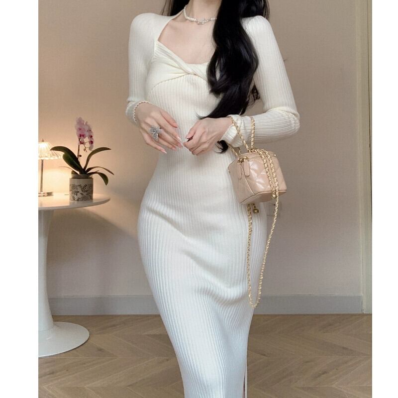 秋の服装の東莞大朗セータードレスは高級感があり、膝上の長い長袖ニットのユニークなドレス、超美しいです ロング オータム 秋物 yingd85282692531