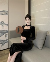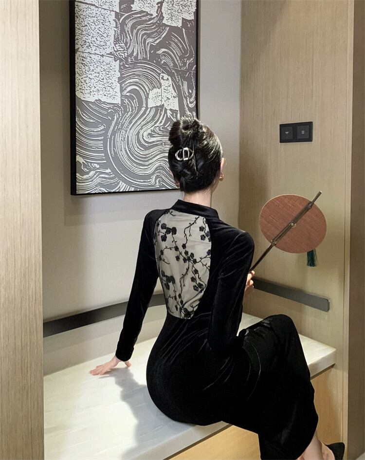 中国風の女性の秋冬スタイルのスリムフィットとエレガントな女性のレースのベルベットのユニークなドレスはとても美しいです オータム 秋物 ウィンター 冬物 yingd76165176950