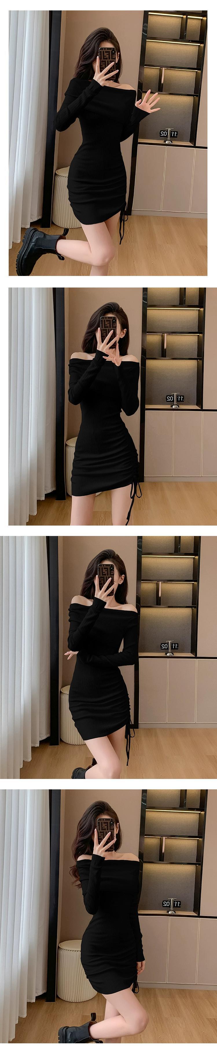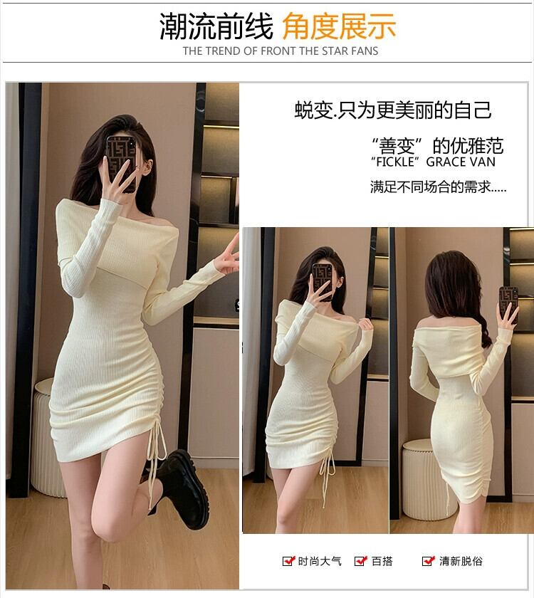 今年人気のトレンドセーターは、スリムでヒップにかかるニットスカートです。ワンショルダーの長袖の個性的なドレスがとても素敵です。 ロング yingd71735065926