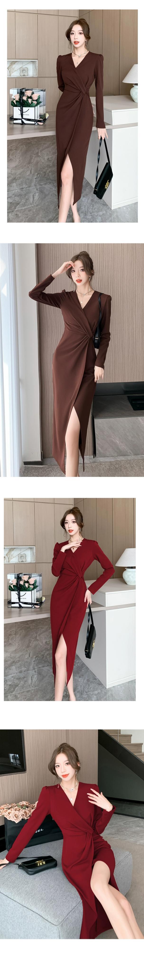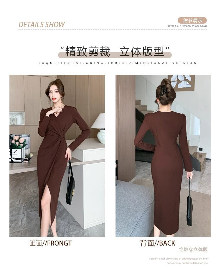 シックでユニークなデザイン、ニッチで美しい小さなスカート、高度なウエスト絞りスリット長袖ドレス2024新しいスタイルの女性 ロング yingd33710507990