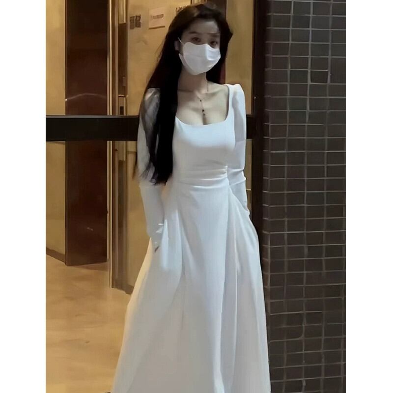 フレンチレトロなウエストを締めるaラインロングスカートの女性の秋2024新しいスタイルの女神スタイルのハイエンドホワイトドレス オータム 秋物 yingd83707067258