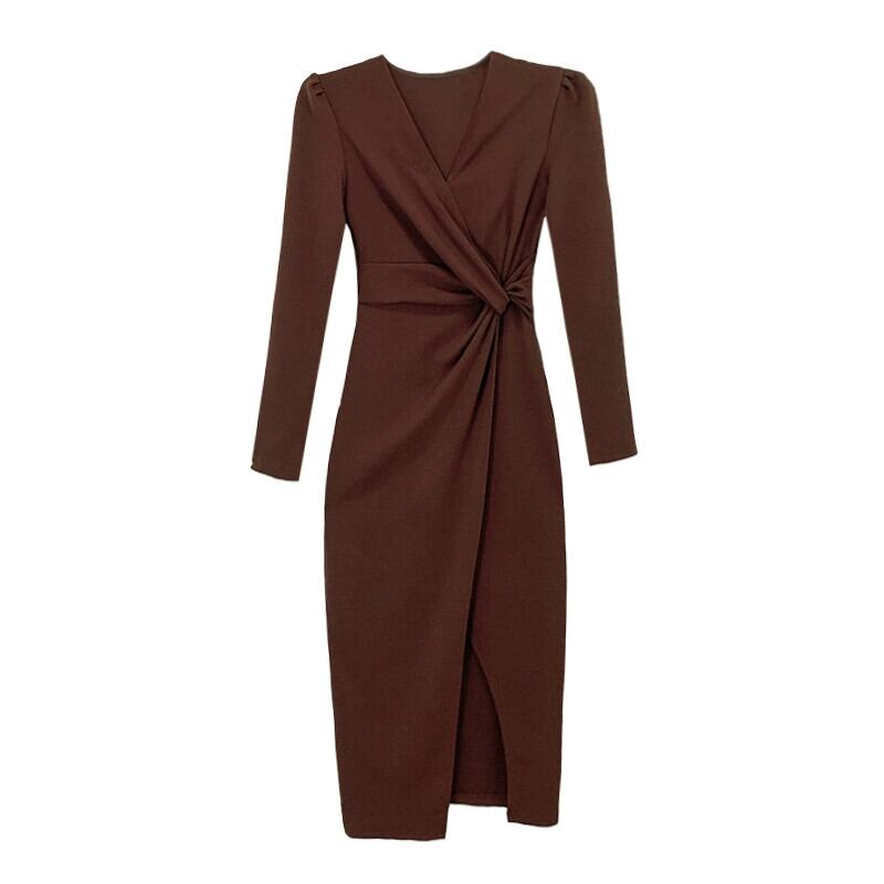 メイラードは美しいミニスカートを着てウエストを細くし、細く見せます。社交界のセクシーなスリット長袖ドレスレディース秋冬。 ロング オータム 秋物 ウィンター 冬物 スリム yingd76461373876