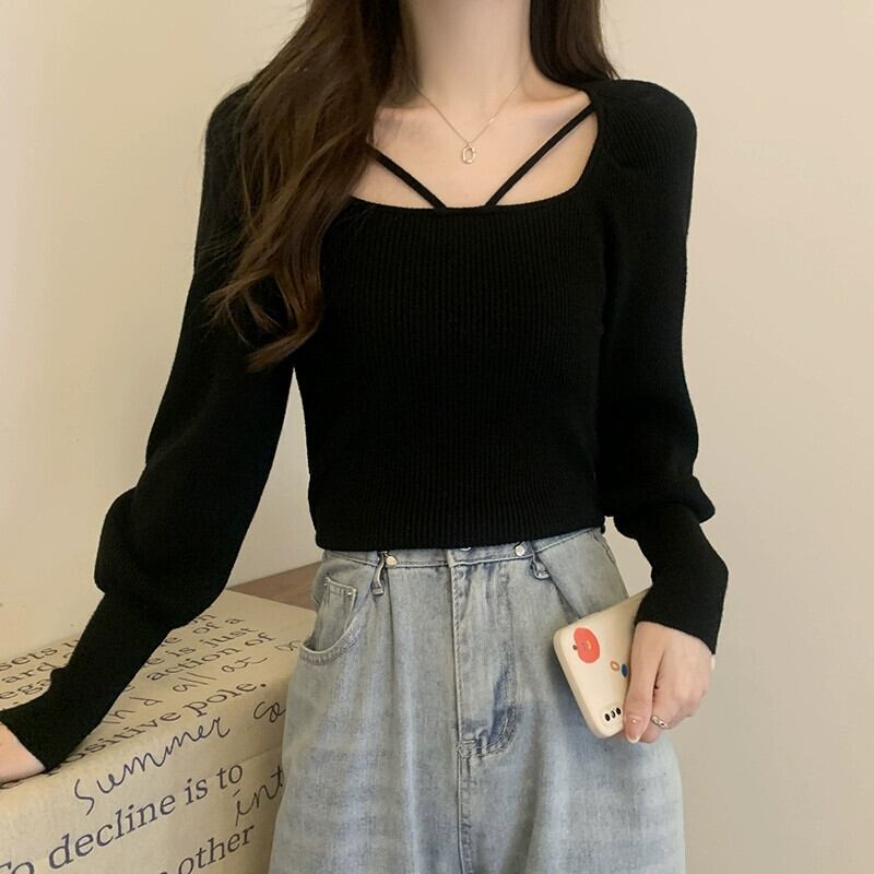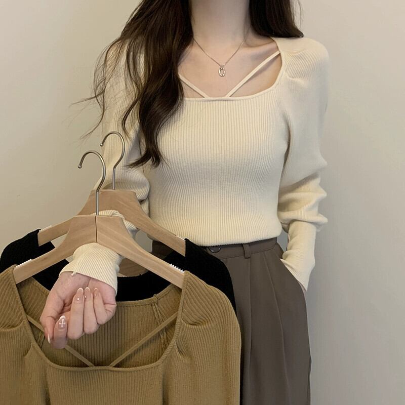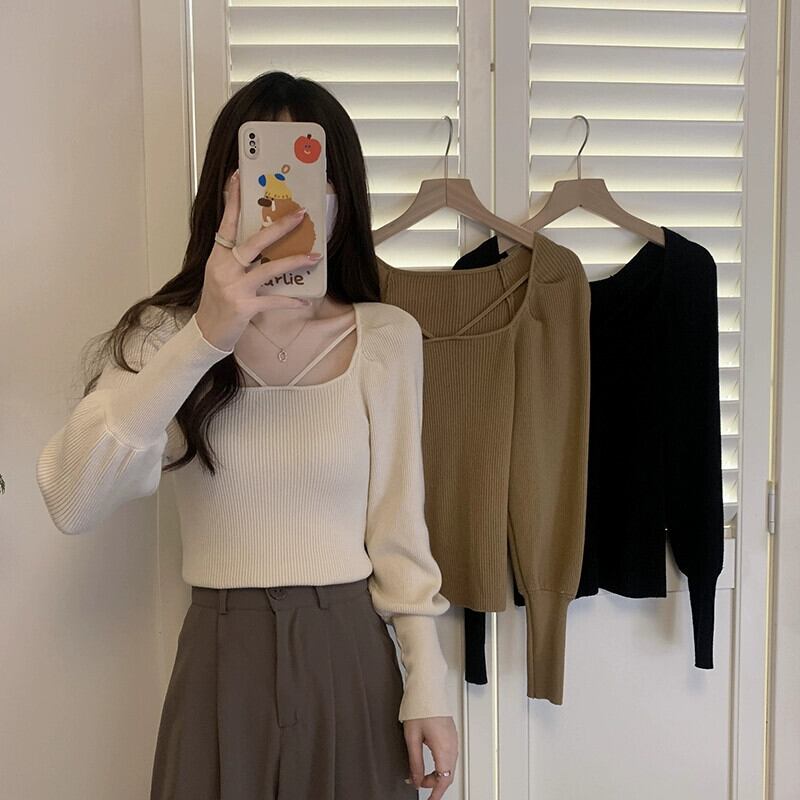 怠惰なスタイルソフトワックスセータージャケット女性 2023 新しい秋と冬のスリムフィットインナーランタンスリーブセータートップ オータム 秋物 ウィンター 冬物 yingd25548829741