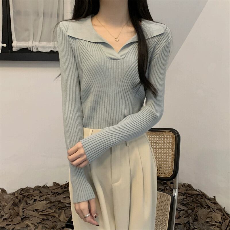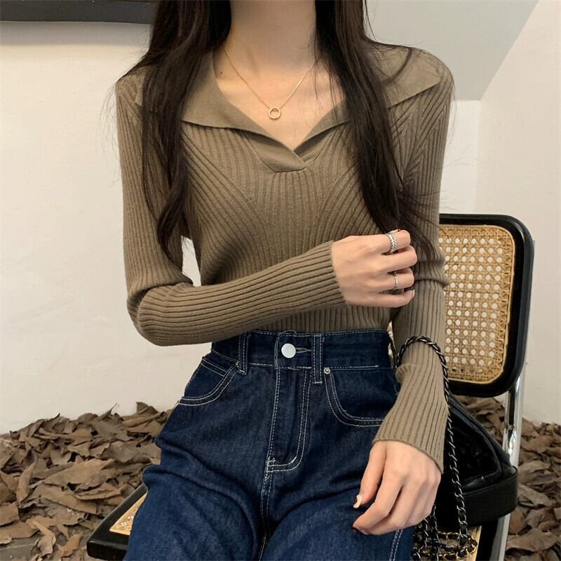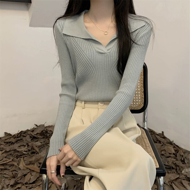 Dalang ウールセータートップス女性 2024 新しい秋ポロカラー長袖スリムプルオーバーセーター底シャツ ロング オータム 秋物 yingd91437705236