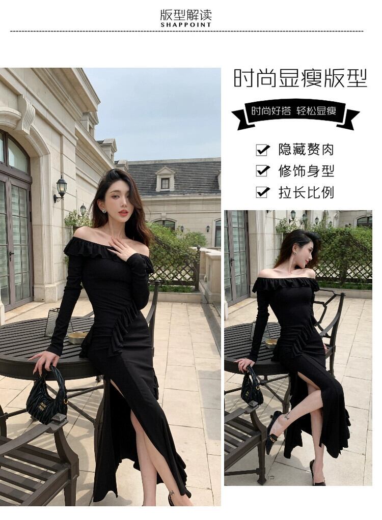 Bubu Shenglian スカートはウエストを細くし、細く見えます。社交家はセクシーなスリットを持っています。 -endと超美形の黒いドレスの女性。 ブラック yingd76490537268
