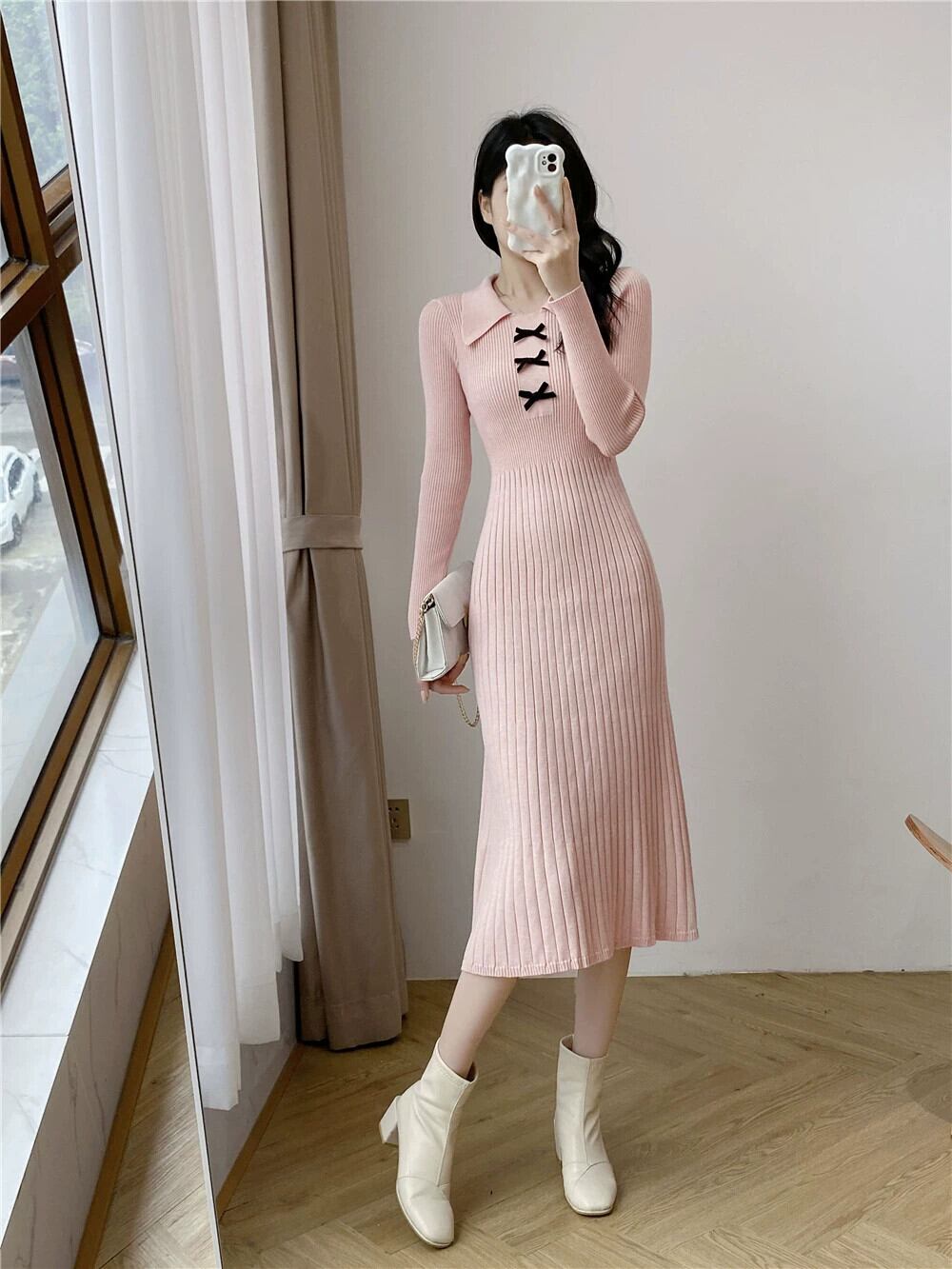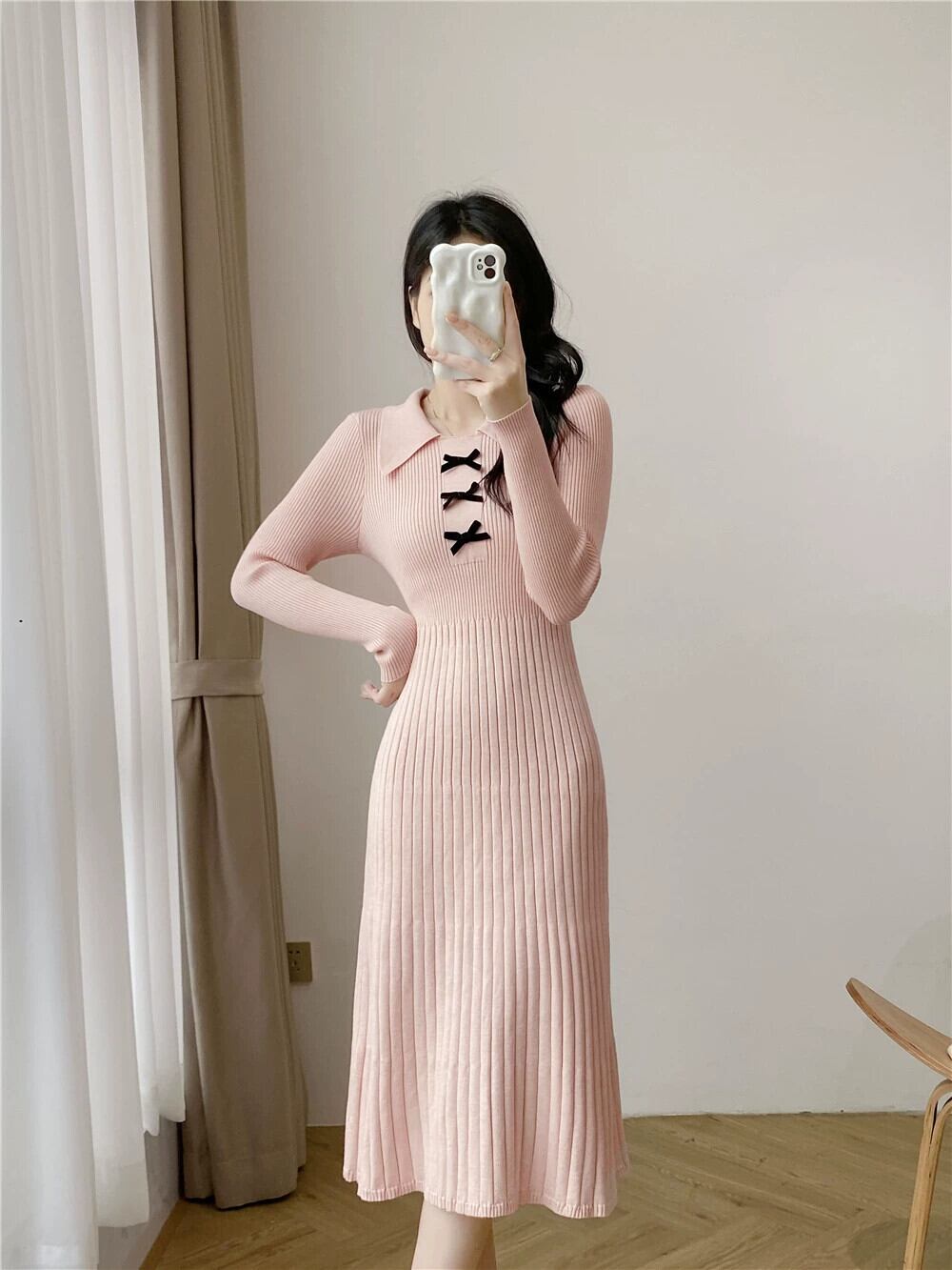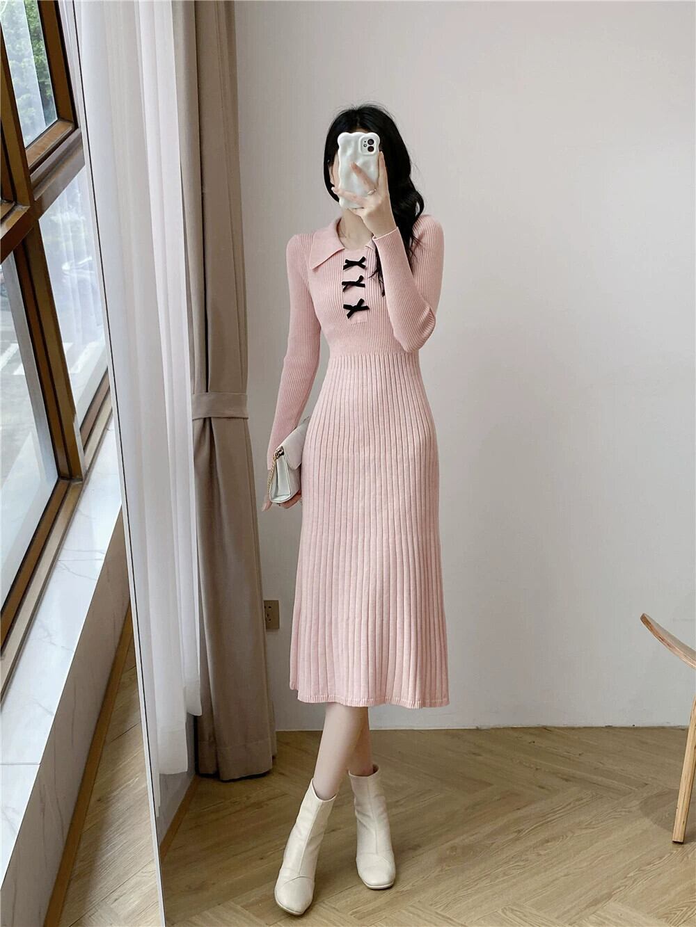 女性の秋と冬のミッドレングスウエスト痩身セータースカート、下にコートがあり、痩身気質、西洋スタイル、年齢を軽減するニットドレス女性 オータム 秋物 ウィンター 冬物 yingd35785329524