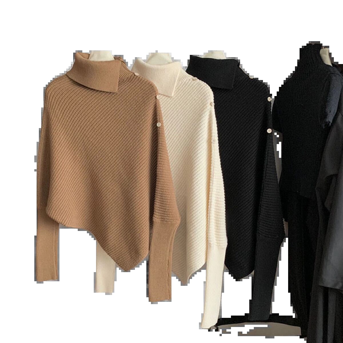 不規則なタートルネックの女性のセーターの女性 2024 新しい秋と冬の怠惰なスタイルのソフトでワックスのようなシックな美しいセーターの女性 オータム 秋物 ウィンター 冬物 yingd44627265381