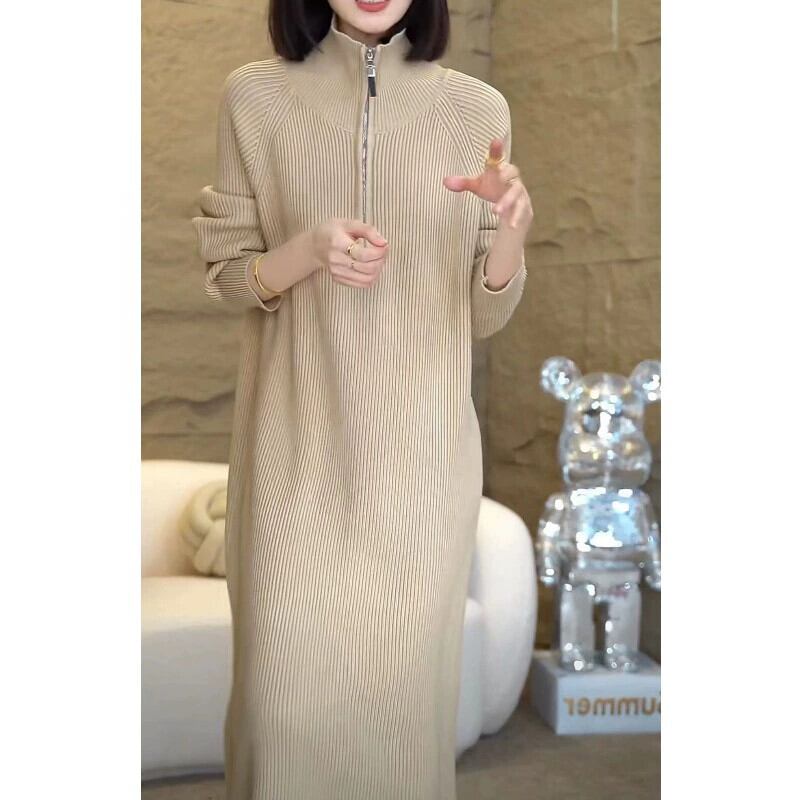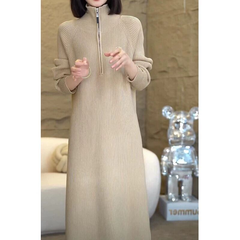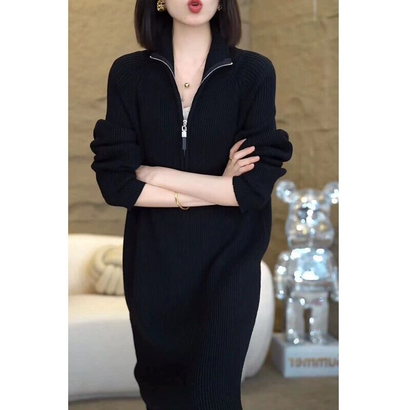 襟ジッパーニットドレス 2024 秋と冬の女性の新しいハイエンドロング膝上セータースカートとボトリングスカート オータム 秋物 ウィンター 冬物 yingd36084300935