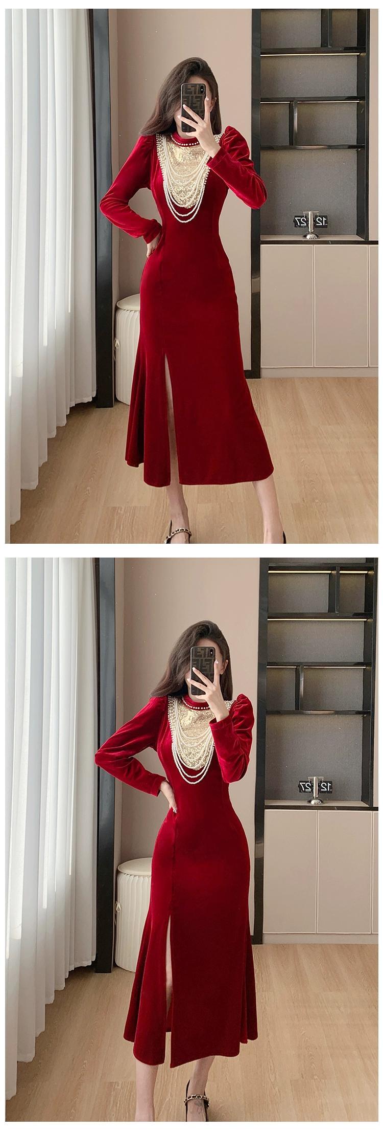 ドレスハイエンドライト高級ニッチバッグヒップフィッシュテールスカートクリスマスとイヤーシャツレッドベルベットドレス秋と冬の女性 オータム 秋物 ウィンター 冬物 yingd96210502848