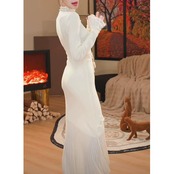 コートの下にスカートを合わせた秋冬スタイル。ウエストを絞って着痩せ、上品で高級感のある超美形長袖ニットワンピースです。 ロング エレガント オータム 秋物 ウィンター 冬物 yingd35889190460