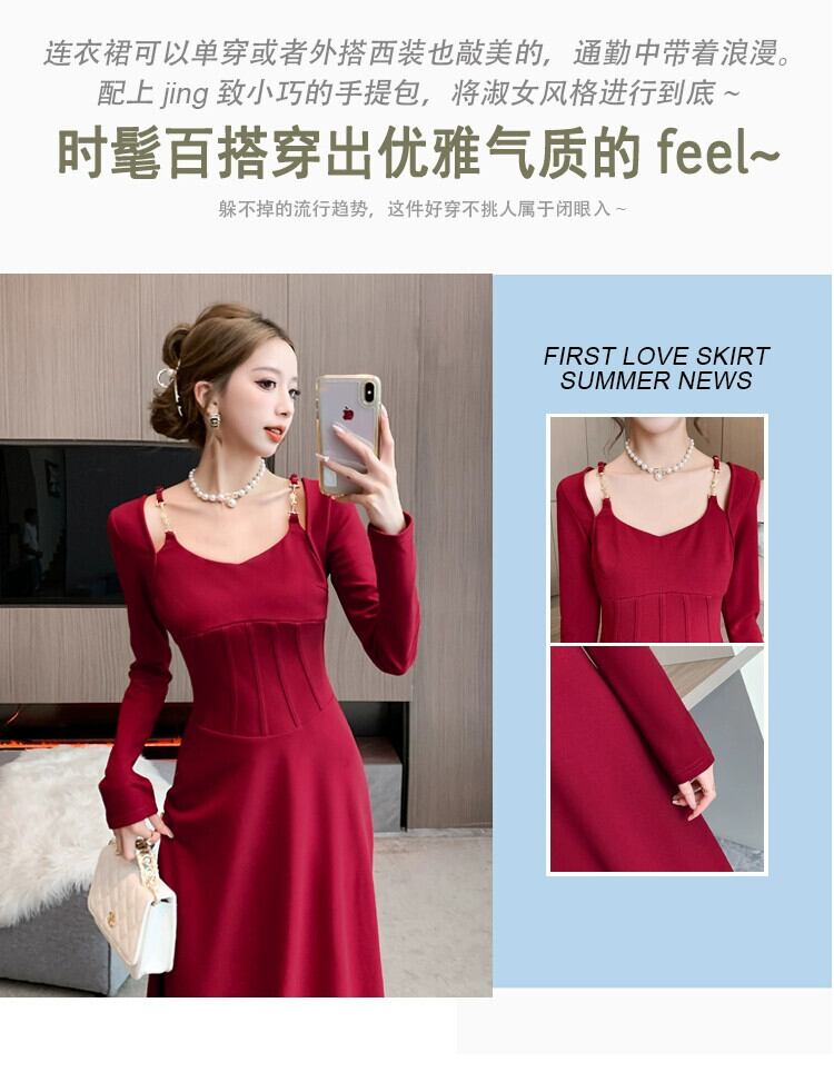 フレンチレトロなティーブレイク、フィッシュボーンデザインのウエストが美しいロングスカートとコート、ベーススカート、冬のインナードレス ウィンター 冬物 yingd8205334920