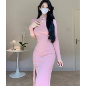 中国風のレトロな国民風のセータードレスの女性の秋と冬 2024 新しいハイエンドスリムヒップカバーニットドレスの女性 オータム 秋物 ウィンター 冬物 yingd24272925900