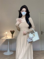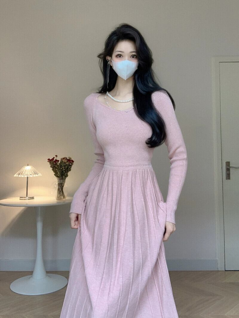 レッドクリスマスシャツセータードレス女性秋と冬 2024 新しいハイエンド底長袖ニットドレス ロング オータム 秋物 ウィンター 冬物 yingd86116300930