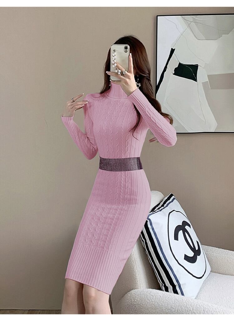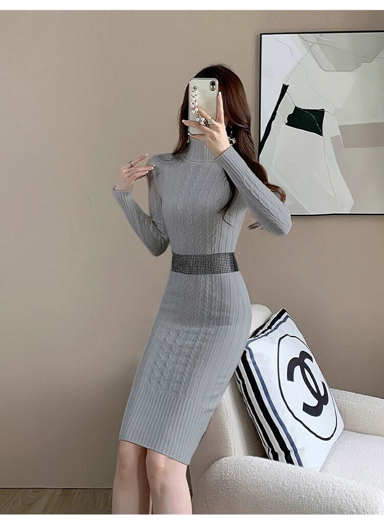 ハーフタートルネックセータードレス女性の秋と冬 2024 新しいハイエンドスリムフィットヒップ抱き底インナーニットドレス女性 オータム 秋物 ウィンター 冬物 yingd31685148728