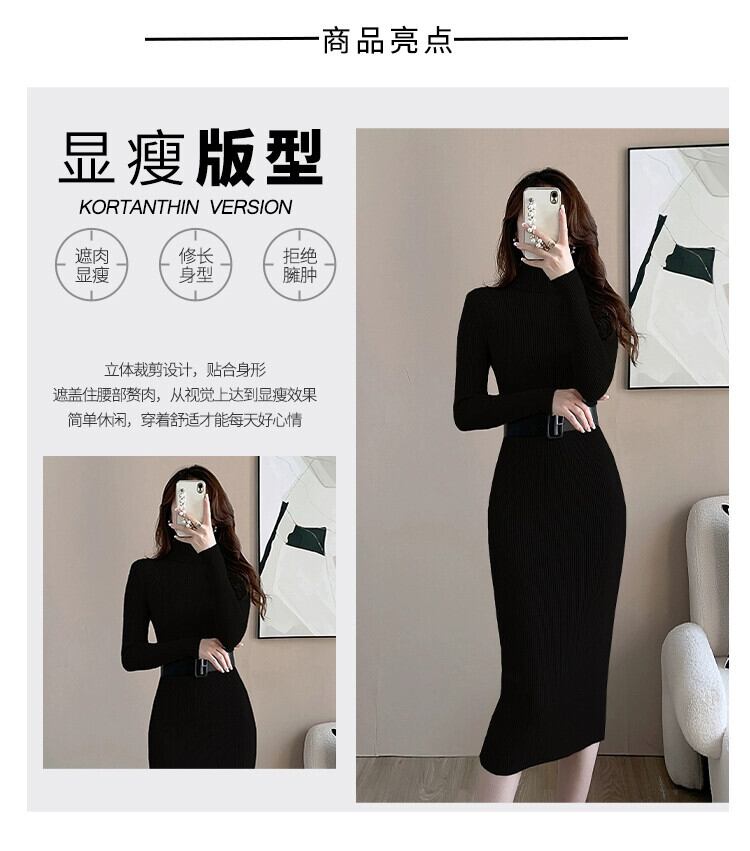 タートルネックセータースカート女性秋と冬 2024 新しいハイエンドウエストスリムフィットヒップボトミングインナーニットドレス オータム 秋物 ウィンター 冬物 yingd77365837973
