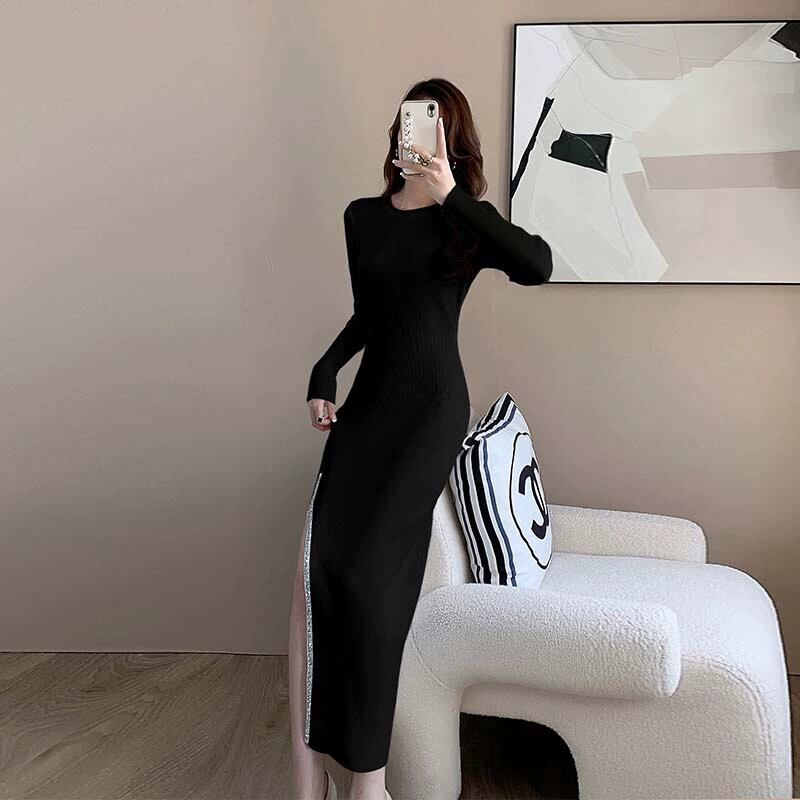 2024 年秋冬の新しいハイエンドのセクシーなスリットボトミングニットドレスのロングニーハイセータースカート女性 オータム 秋物 ウィンター 冬物 yingd94037703315