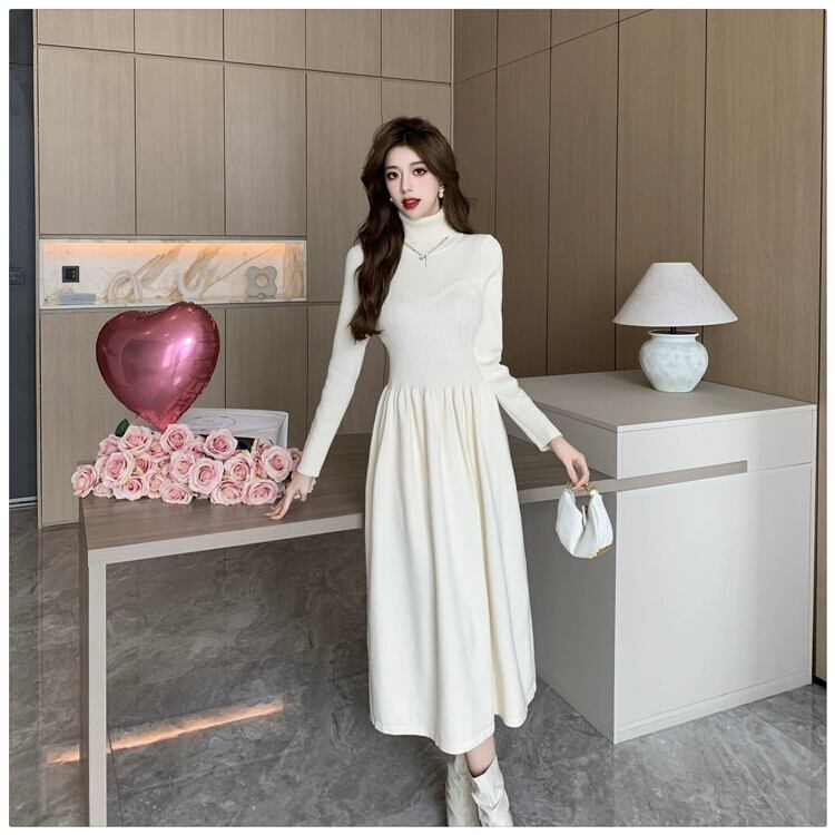 フランス高級超美形タートルネックセーター、冬用インナーワンピース、レディースウエスト痩せニットロングスカート ウィンター 冬物 yingd45336439230