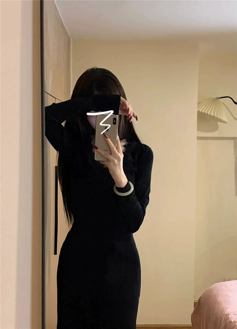 フレンチヘップバーンスタイルの黒のドレスの女性の秋と冬2023新しいハイエンドボトムとフィッシュテールロングスカート ブラック オータム 秋物 ウィンター 冬物 yingd7428810355