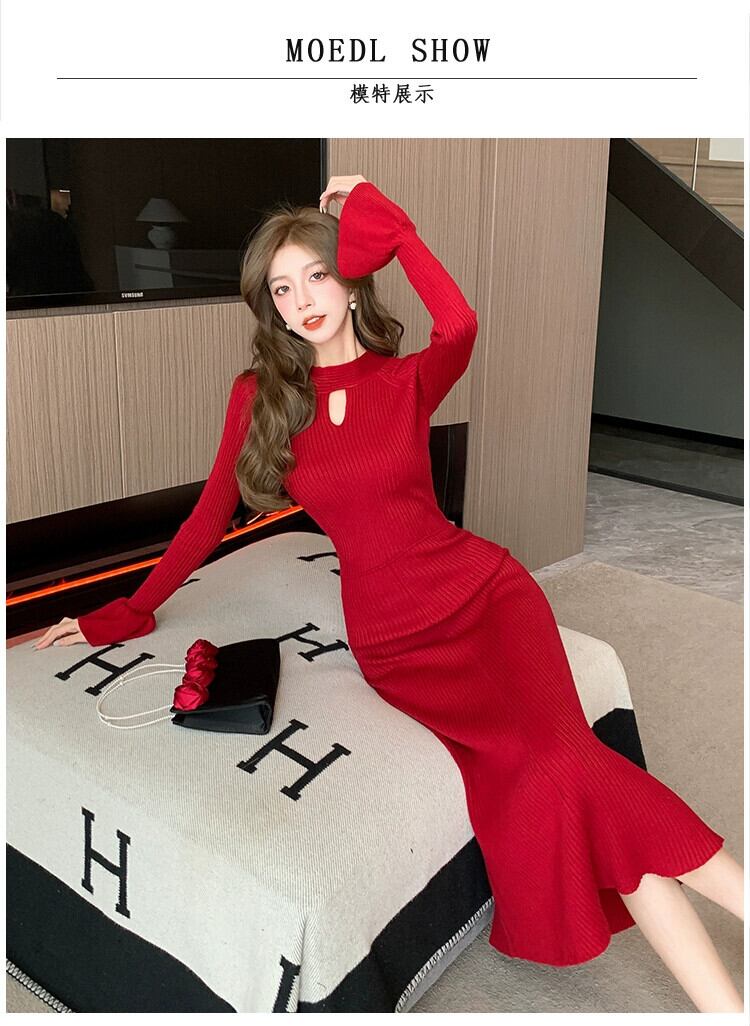秋冬のロングセーターレディース、ユニークで美しいデザイン、中空スリムフィット、ヒップハグフィッシュテールインナーニットドレスレディース オータム 秋物 ウィンター 冬物 yingd82653888583