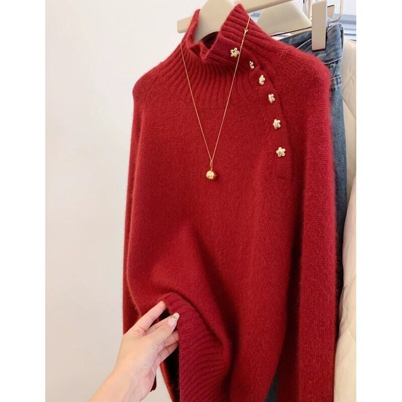 タートルネックセーター女性 2024 新しい冬怠惰なスタイルソフトワックス状赤年の女性のプルオーバーセータートップ レッド ウィンター 冬物 yingd1075722472