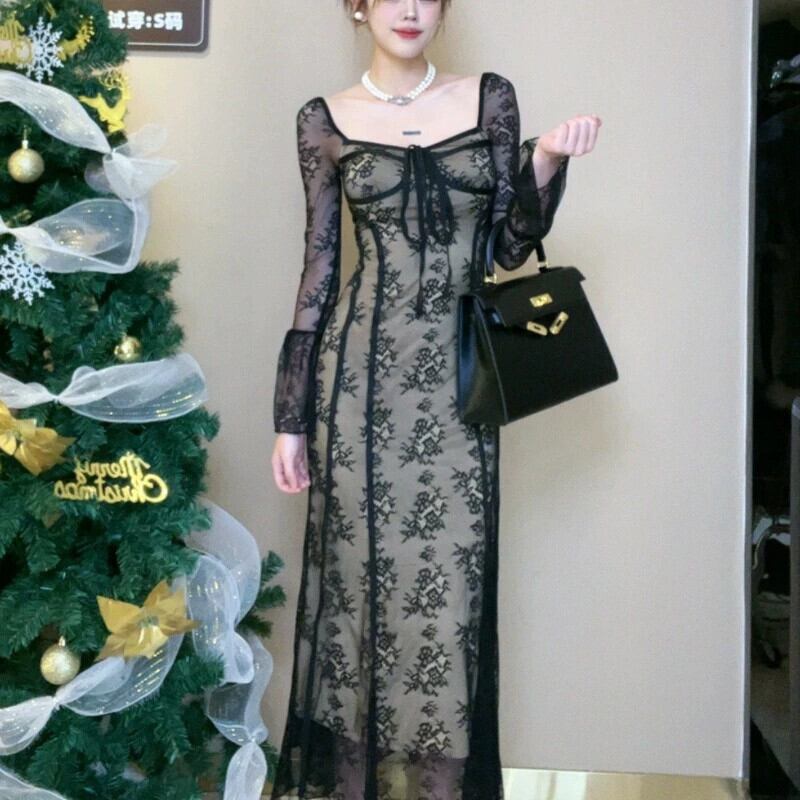 セクシーなスカート、セクシーなレースのヒップカバーフィッシュテールボトムロングスカート、高級冬インナードレスレディース ウィンター 冬物 yingd83383174219