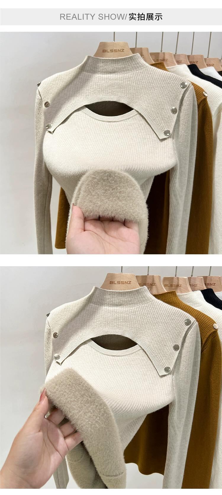 冬用のワンピースベルベットハーフタートルネックボトミングシャツレディースプラスベルベットで暖かさを保ち、中空の長袖セーターでデザインされています。 ロング ウィンター 冬物 yingd31975242215