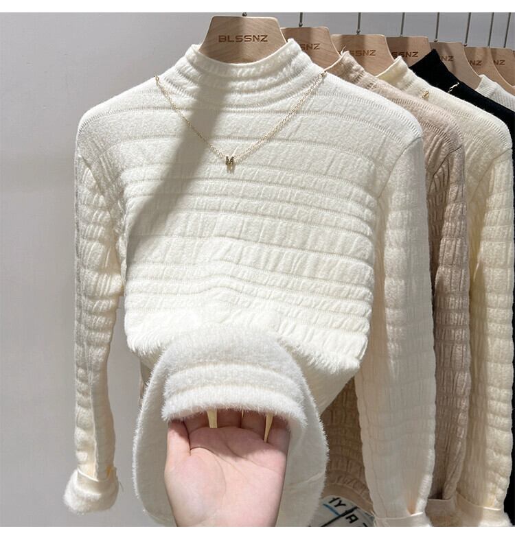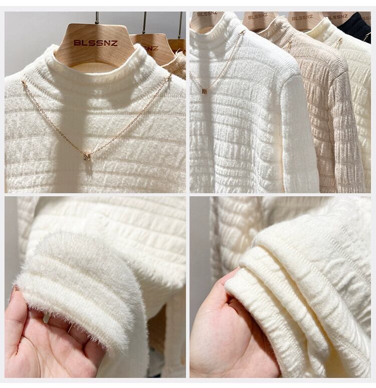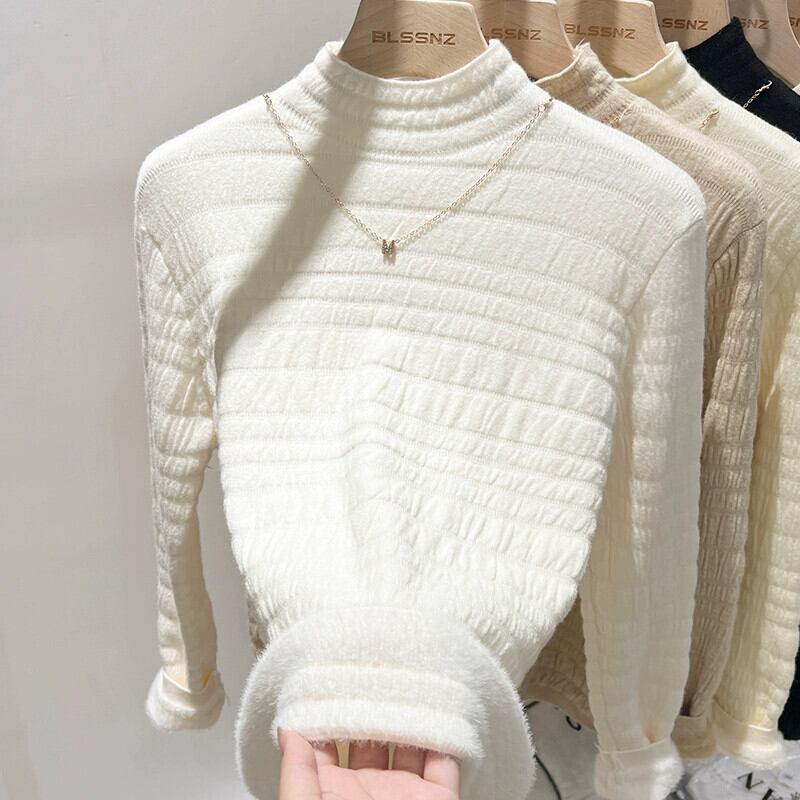 ベルベットと厚みのあるインナーレイヤーを備えた冬のハーフタートルネックボトリングシャツ女性は暖かく、ハイエンドの非常に素敵なセーターセータートップを保ちます ウィンター 冬物 yingd82524150651