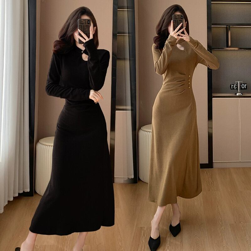 中国風の女性の秋と冬のスタイルの痩身ヒップハグロングスカート、ハイエンドで超見栄えの良いボトムインナードレス女性 オータム 秋物 ウィンター 冬物 yingd83569033420