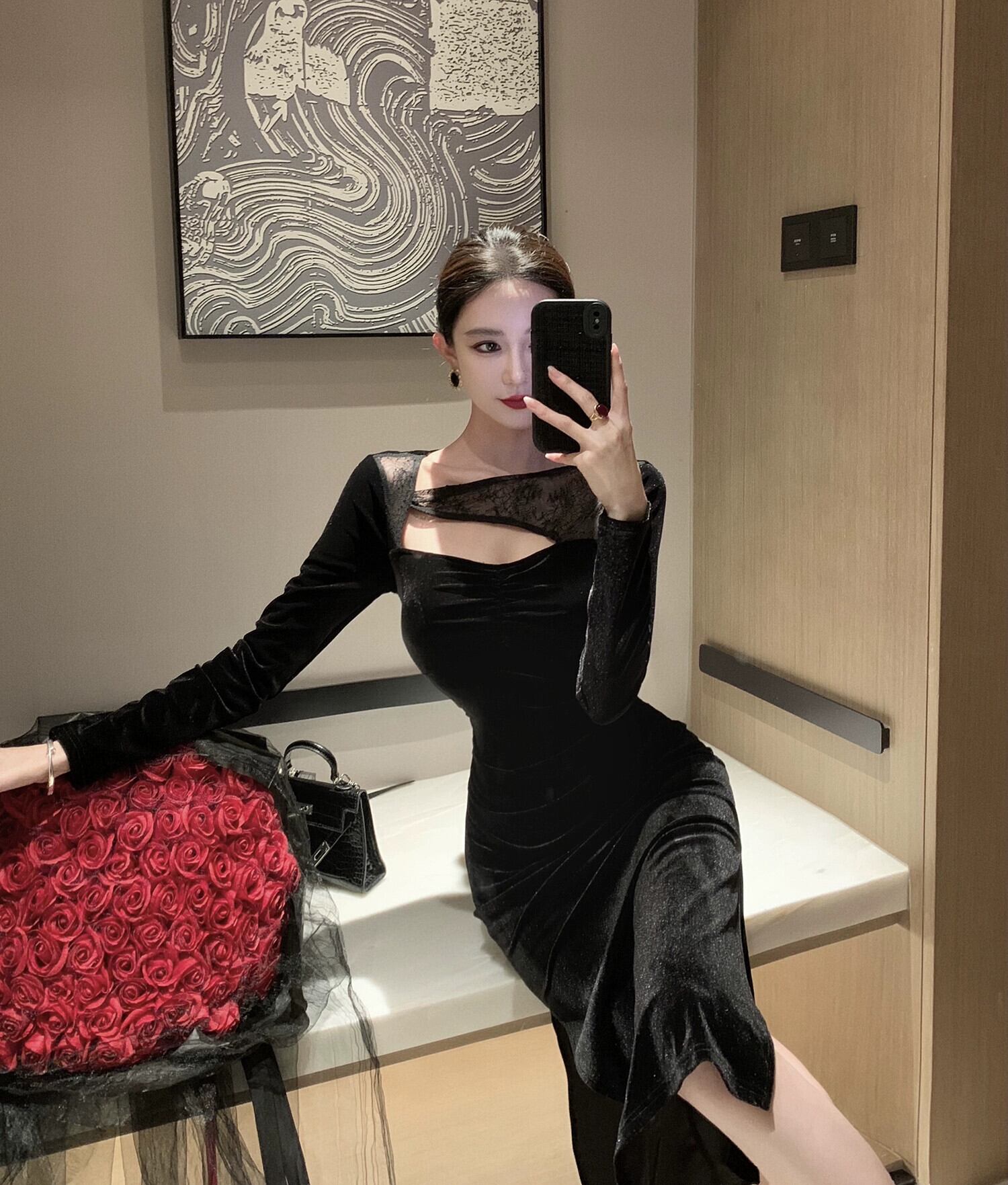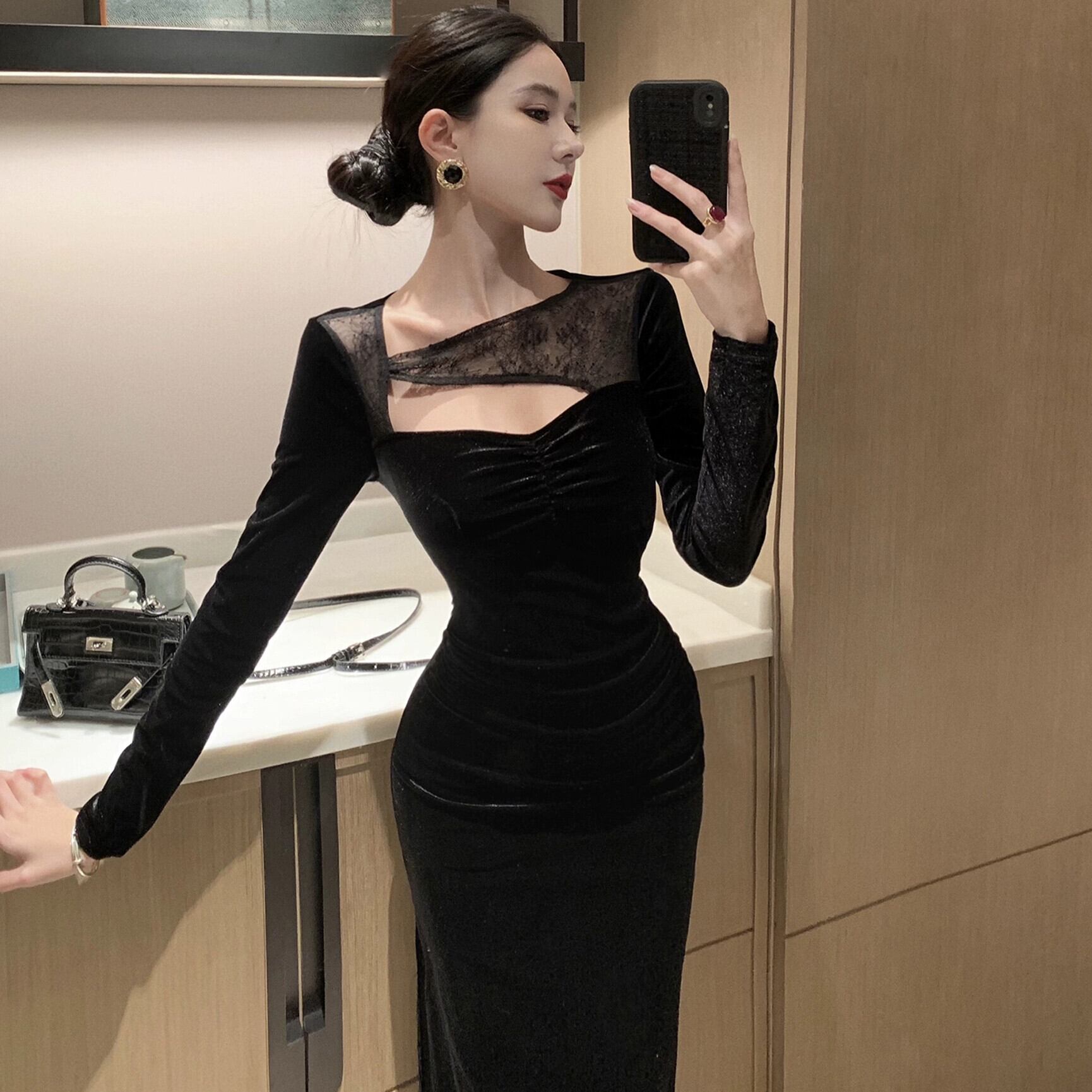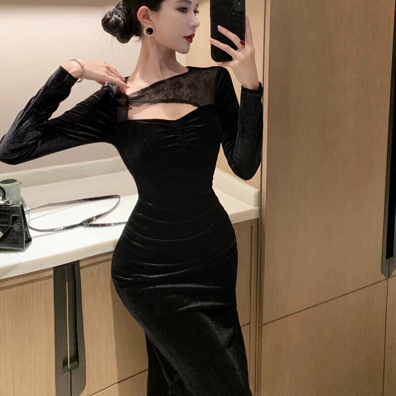 秋と冬のフェミニンで魅力的なスカートの女性、スリムフィットのヒップハグベルベットボトムドレスの女性 オータム 秋物 ウィンター 冬物 yingd6339496426