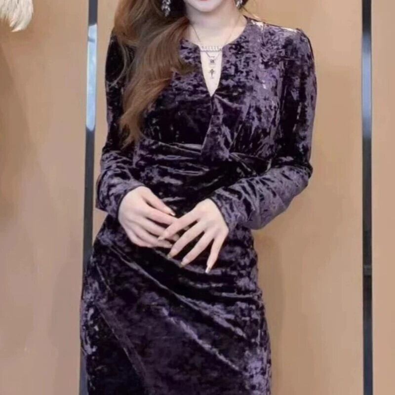 秋冬の魅力的なスカートの女性、スリムでセクシー、ヒップを包み込むベルベットの高級絶妙なドレス オータム 秋物 ウィンター 冬物 yingd52750345019