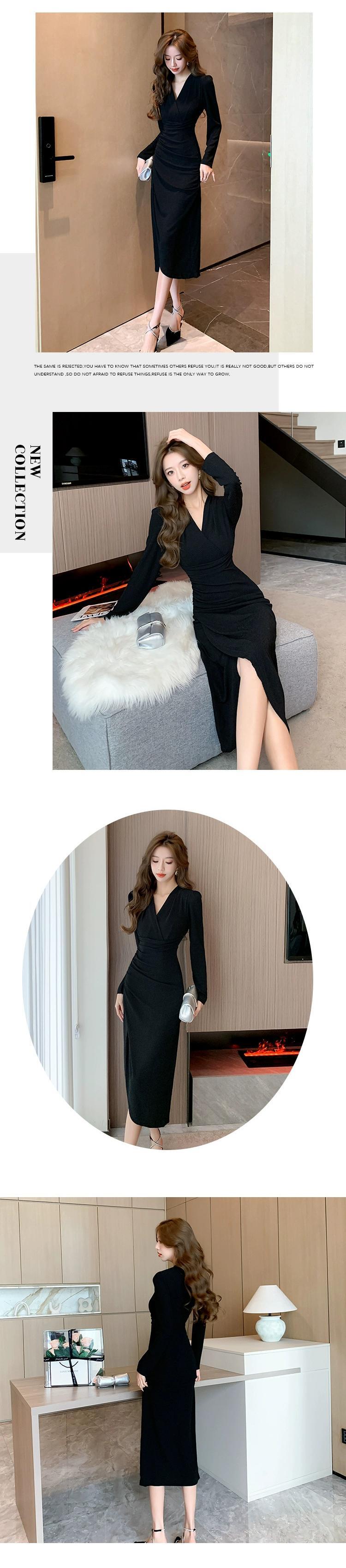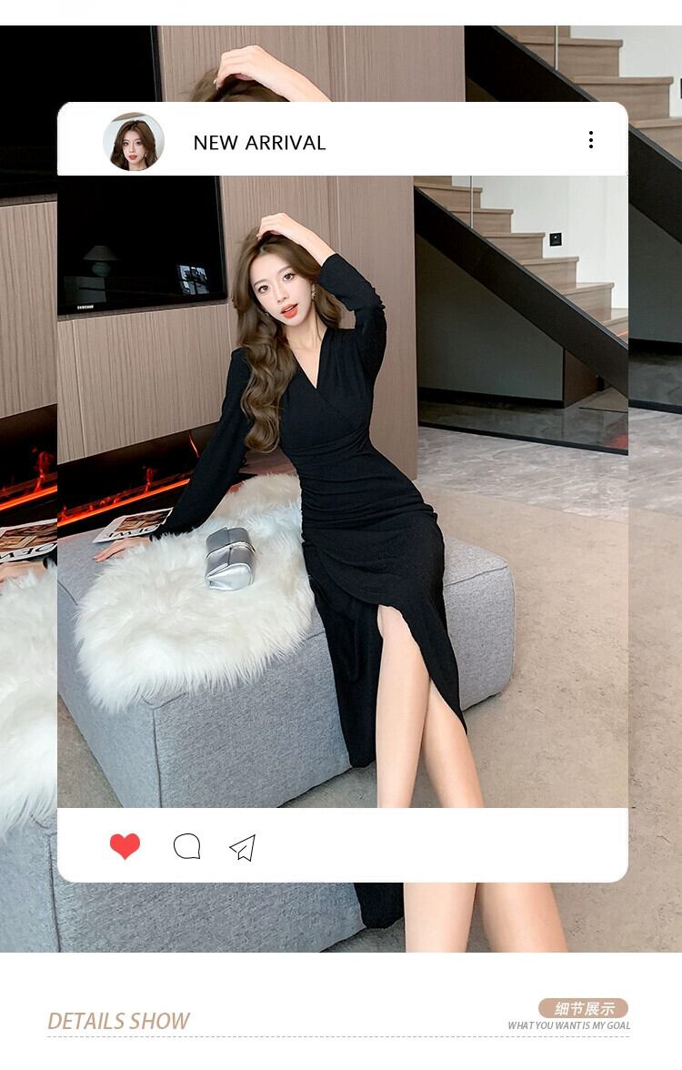シックで個性的、きれいめスカート、高級感、超きれいめ、ウエスト絞り、着痩せ、Vネック冬インナーワンピース ウィンター 冬物 yingd25913898980