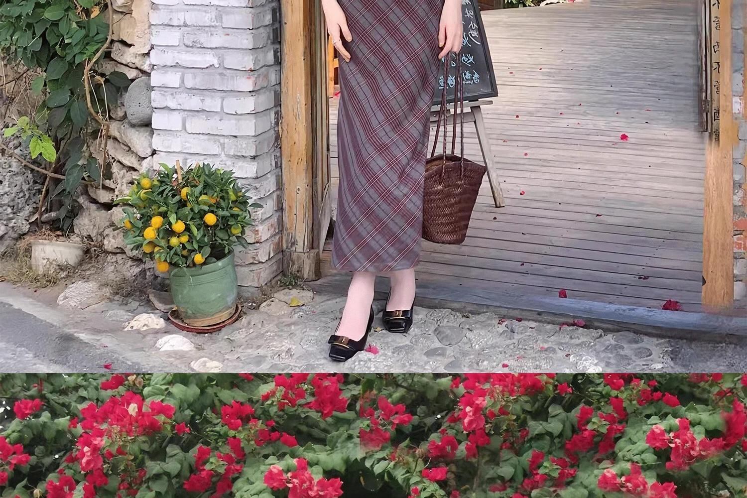 さまざまなスタイルの少しぽっちゃりしたスカート、高級感と気質、チェック柄の新しい中国風のチャイナドレスロングスカート、超体型を引き立たせるドレス yingd39196758048