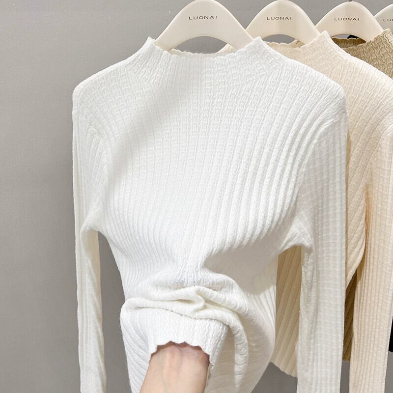 秋と冬のハーフタートルネックボトムシャツ女性、西洋スタイルの年齢を減らすトップ、大きなウールの長袖セーター女性 ロング オータム 秋物 ウィンター 冬物 yingd81861710943