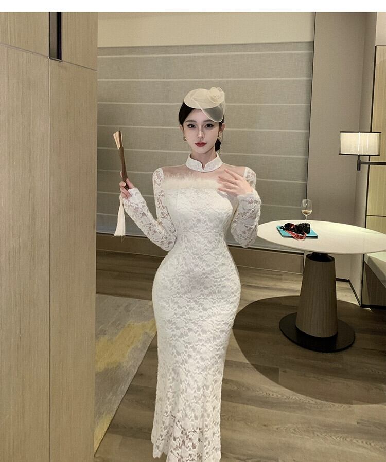 フェミニンで魅力的なスカート、スリムフィットヒップハグレースのハイエンドの絶妙なドレスの女性の秋と冬の オータム 秋物 ウィンター 冬物 yingd8002491902