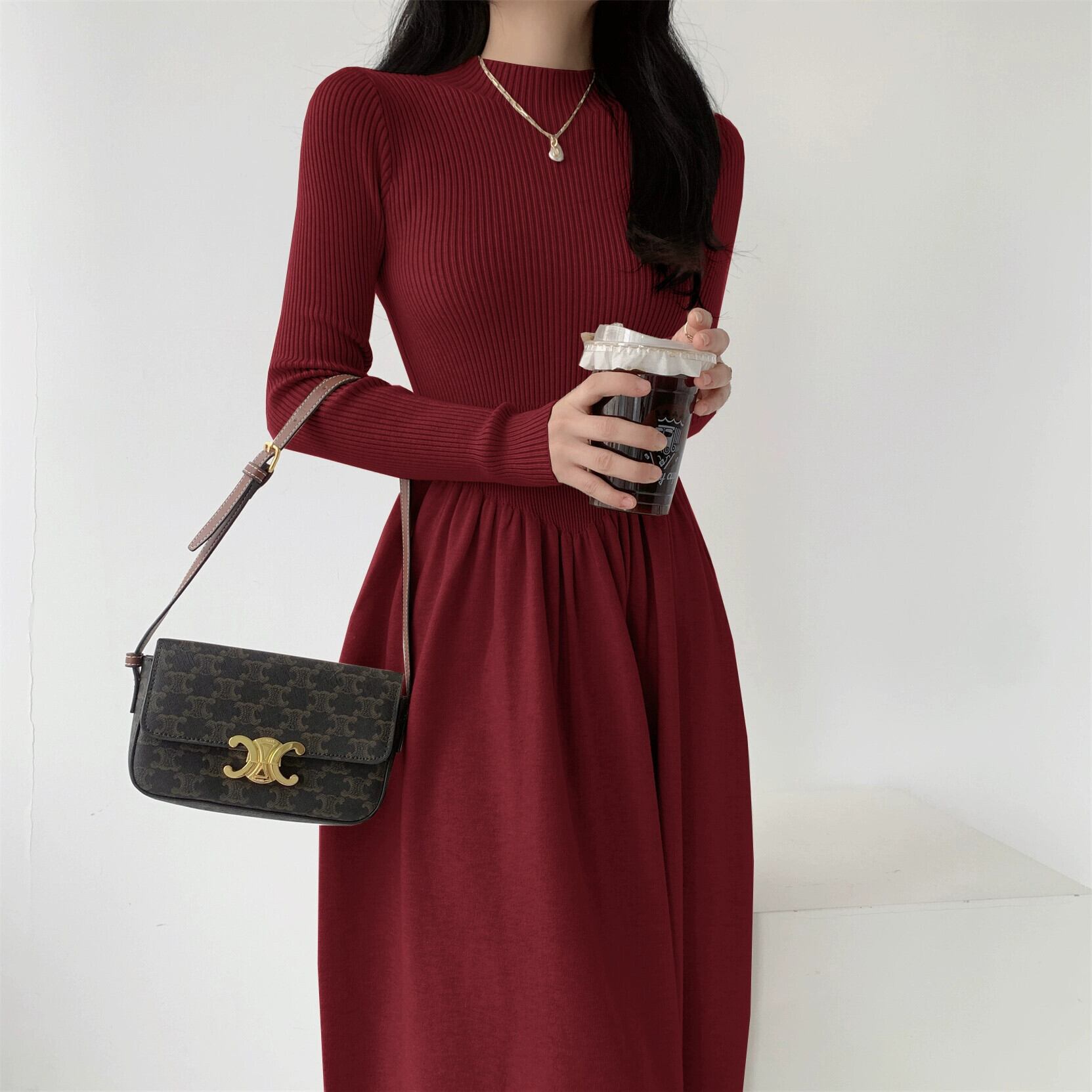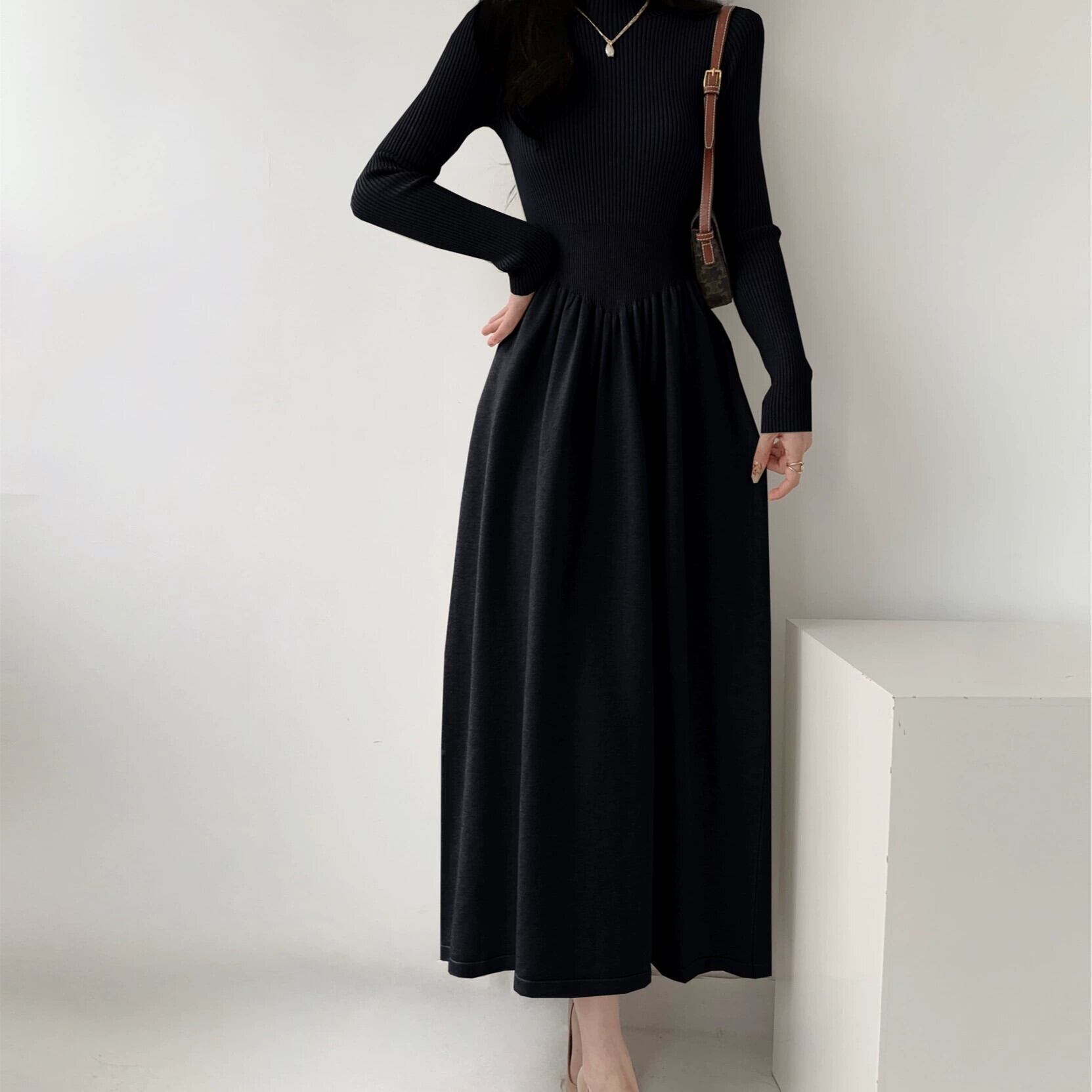 ハーフタートルネックニット冬のインナードレス小柄な女性、ハイエンドのロング膝上ボトムセータードレス ウィンター 冬物 yingd37644037697