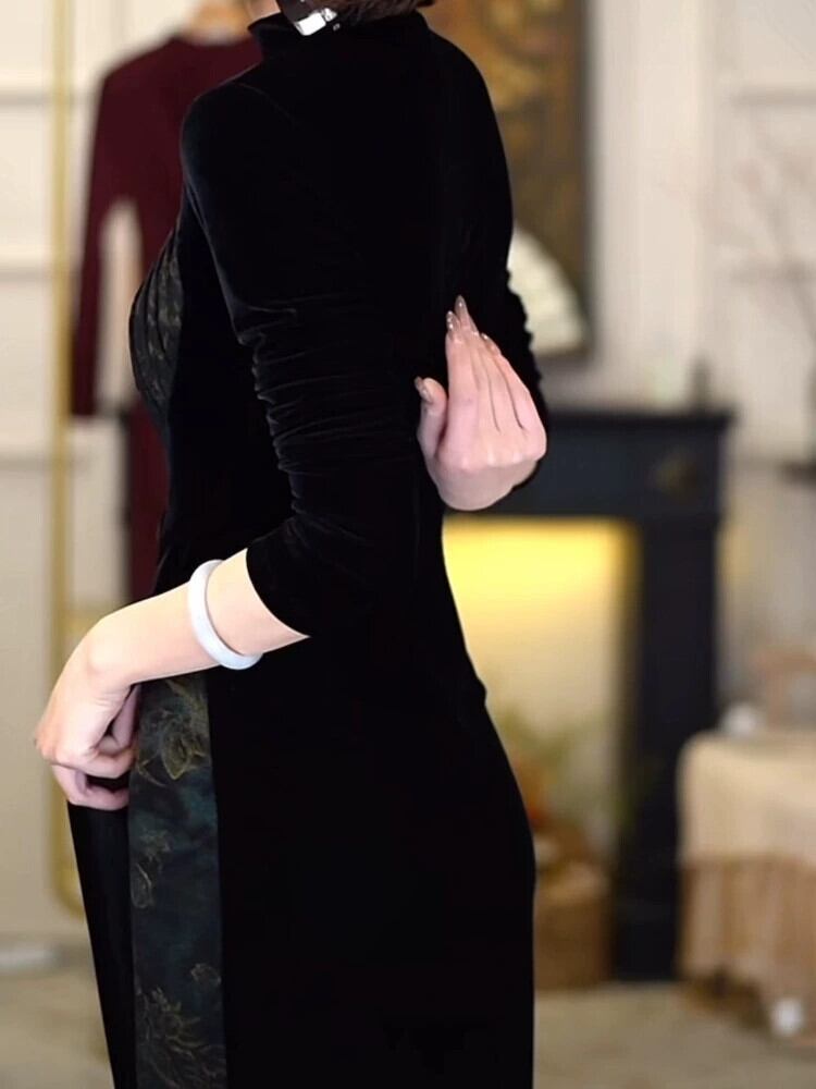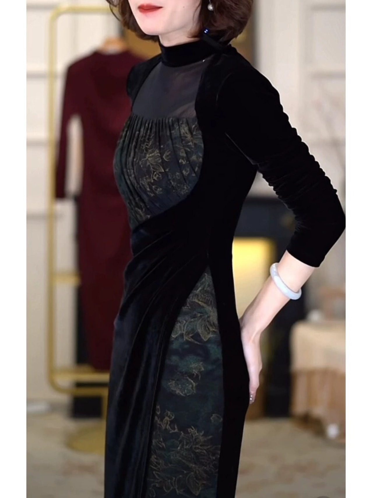 気質の女性のハイエンドスリムフィットメッシュスプライシングベルベットシックで美しいハイエンドの絶妙なドレス秋と冬の女性 オータム 秋物 ウィンター 冬物 yingd45921473927