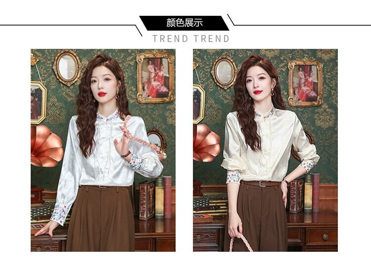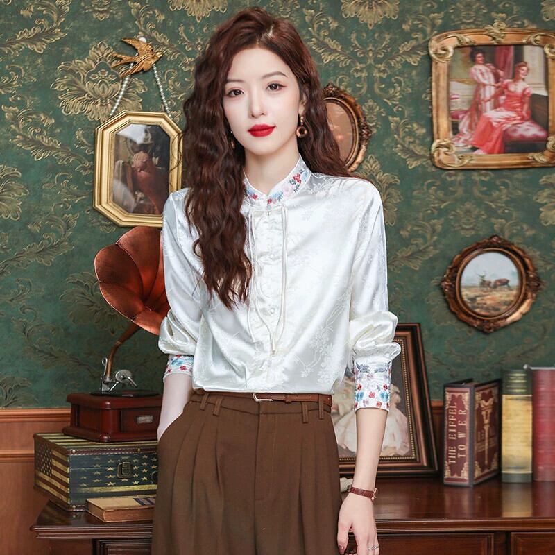 中国風レディース中国風シャツ2024初春新作トップス、シックで美しい長袖刺繍白シャツ ロング ホワイト レッド スプリング 春物 yingd91173664480
